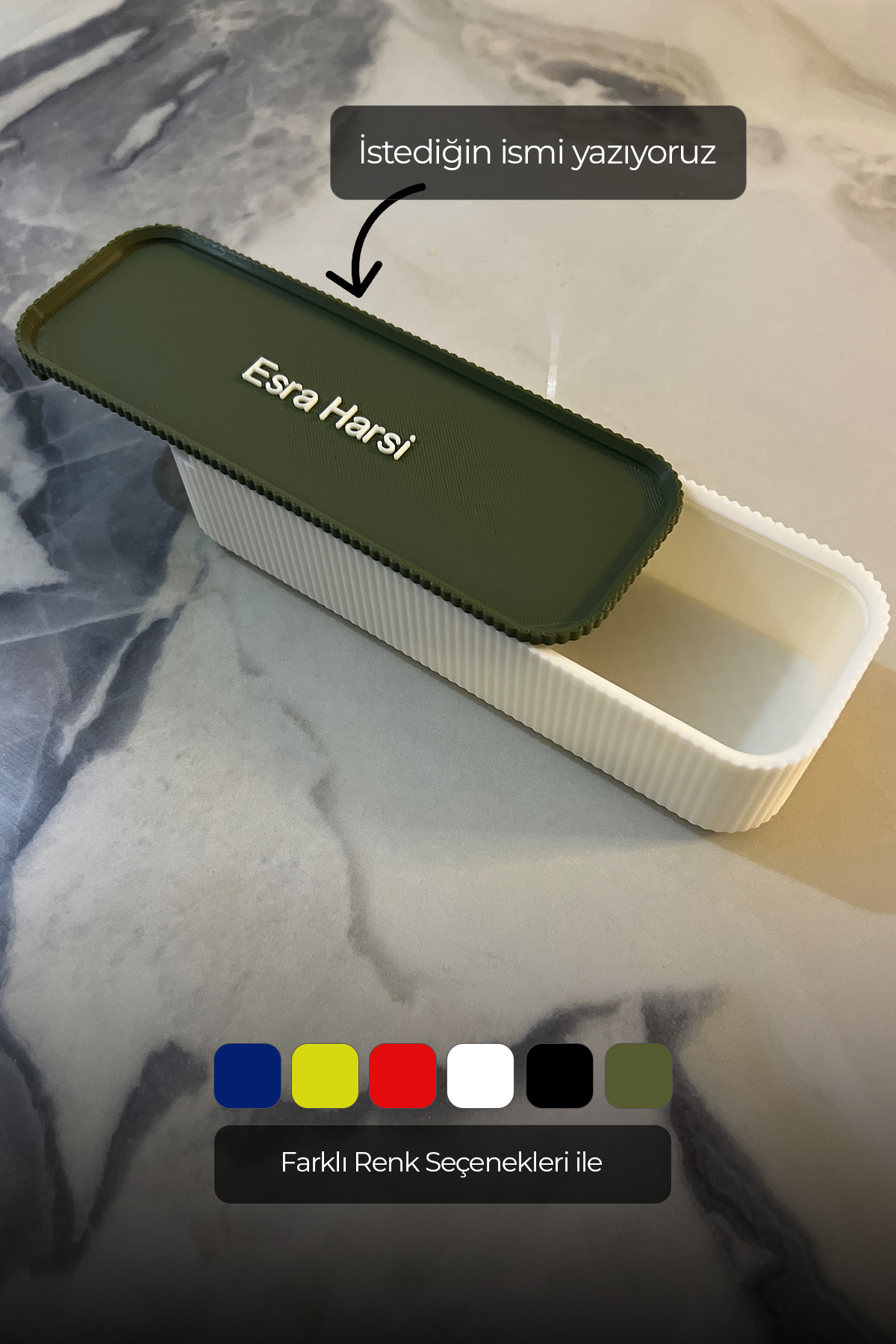 Kişiye özel, farklı renk seçenekleri ile kalem kutu.