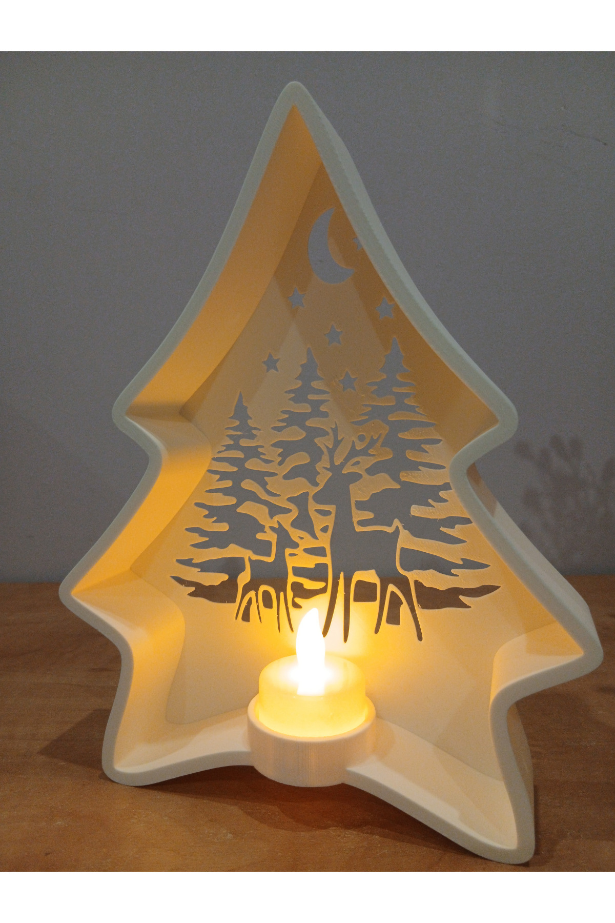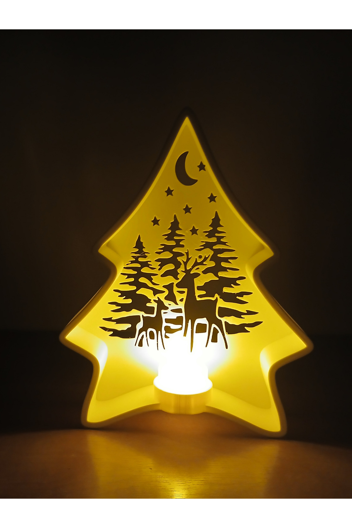 İç kısmındaki ay, yıldız ve ağaç silüetleriyle özellikle yılbaşı, kış temalı dekorasyonlar ve loş ışık sevenler için ideal bir üründür.